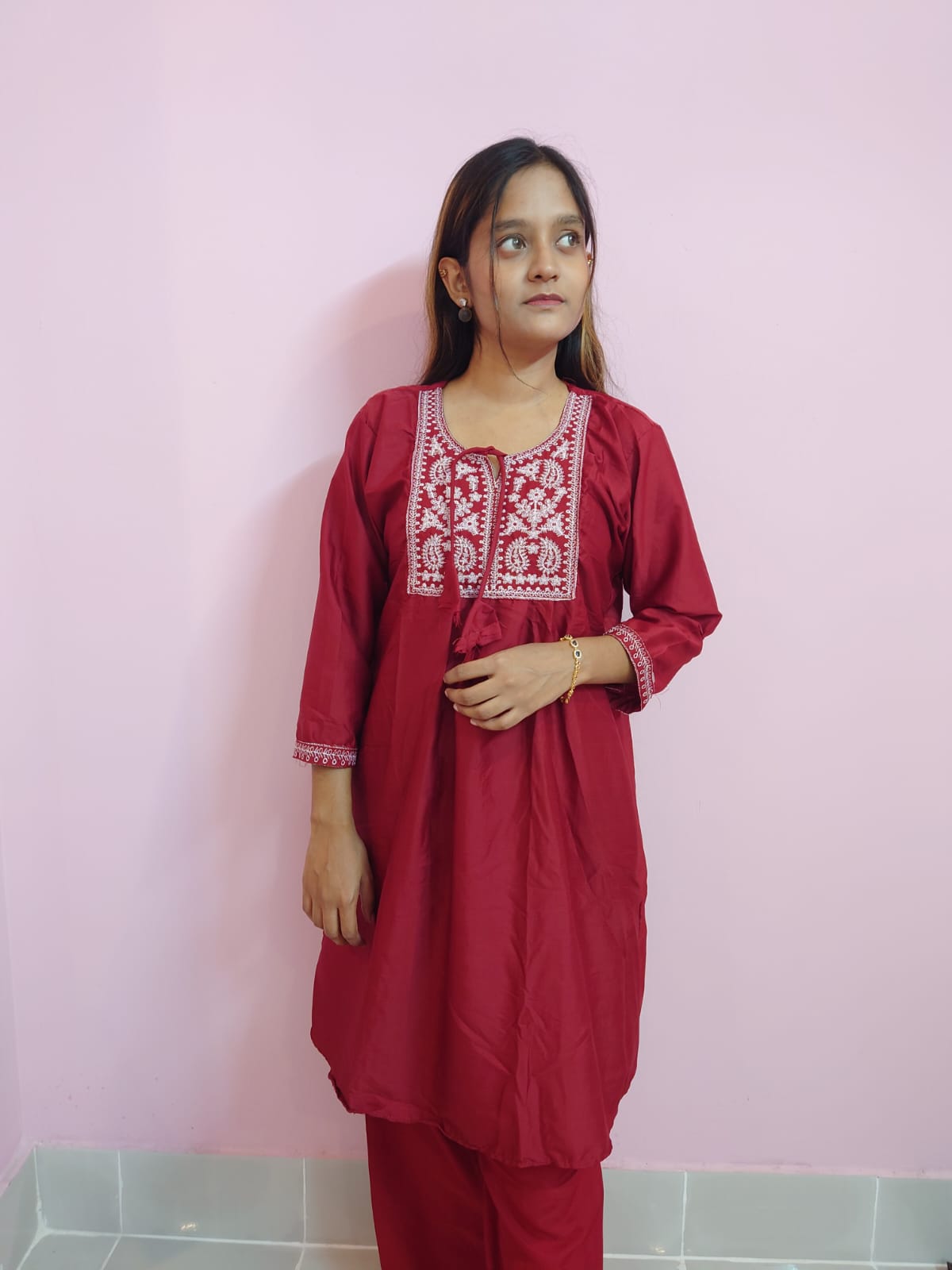 ✨ গাঢ় লাল রঙের উপর কালো এমব্রয়ডারি ডিজাইন